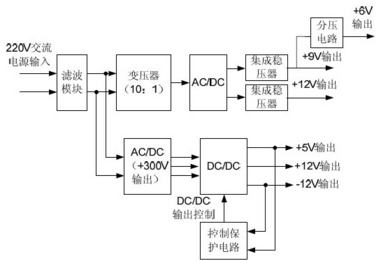 在實際應(yīng)用中,單路輸出的電源模塊有時無法滿足一些特殊設(shè)備的要求,這些設(shè)備一般要求電源要有雙路、三路甚至多路輸出的功能。下面介紹一種電源模塊多路穩(wěn)壓的設(shè)計方案,說明ACDC電源模塊中的整流電路、DCDC電路、保護電路等工作原理及設(shè)計部分。