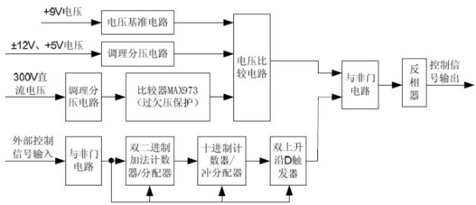 控制保護電路又分為控制以及過欠壓保護電路,控制電路用來對可控直流電壓的輸出進行控制,過欠壓保護電路用來對三個DC-DC的過欠壓保護作用。