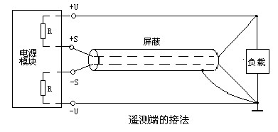 如上圖所示:目前多數(shù)低壓大電流輸出的電源模塊都有遙測(cè)端+S 和-S ,使電源內(nèi)部反饋控制電路通過(guò)檢測(cè)線和負(fù)載相連接,補(bǔ)償大電流線路壓降對(duì)負(fù)載效應(yīng)值的影響。圖中給出了遙測(cè)端和負(fù)載的連接方法,檢測(cè)線和輸出大電 流負(fù)載線分離,而遙測(cè)端直接檢測(cè)負(fù)載兩端電壓。這種方法是利用提高輸出端電壓來(lái)維持負(fù)載兩端的電壓值,其中遙測(cè)端與負(fù)載的連線應(yīng)盡可能屏蔽,避免電磁干擾影響電源內(nèi)部的反饋控制電路。一般在遙測(cè)端與電源輸出端之間有一只電阻,假如遙測(cè)端由于粗心沒(méi)有連接到負(fù)載端上,可防止輸出端電壓上升過(guò)高。當(dāng)遙測(cè)端不用,應(yīng)分別和電源正負(fù)端短接。